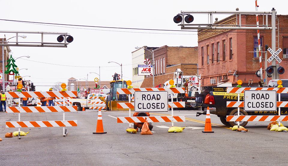 Main Street in West Frankfort (Route 149) is now closed for repair of the railroad crossing.  It will be completed before 7:00 p.m. tomorrow evening, weather permitting.