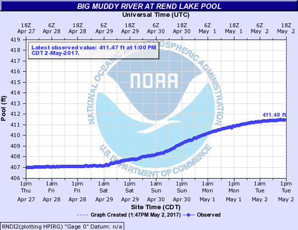 Above is the pool for Rend Lake today.  Despite the high waters, a representative from the Army Corps of Engineers stated that South Sandusky and the bike trail below the dam in places is the only two facilities that are closed.  There is a wind advisory for area lakes until 6:00 p.m.