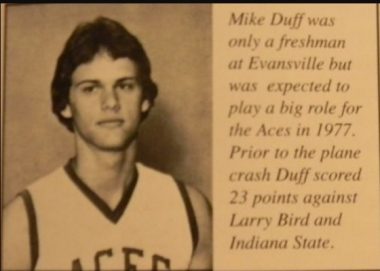 On the final game of his life, Dec. 10, 1977 Duff, only a freshman, scored 23 in a loss to highly-ranked Indiana State and Larry Bird. An excerpt from a story in the Evansville Courier & Press following the Indiana State game shows that Duff had already caught the attention of Evansville Coach Bobby Watson.