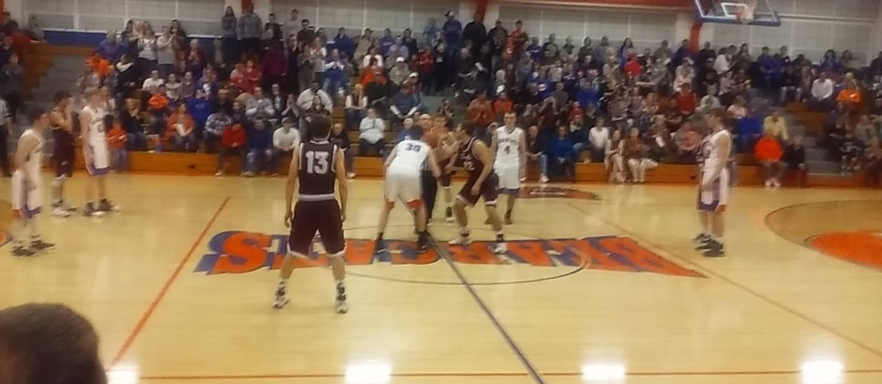 Jamie Lance and Jared Curry get ready to tip it up in Tuesday night’s game where S-V won 85-81 in OT